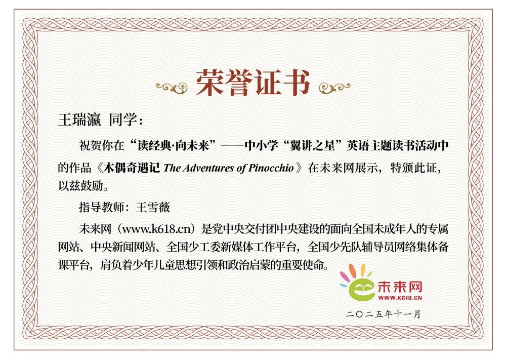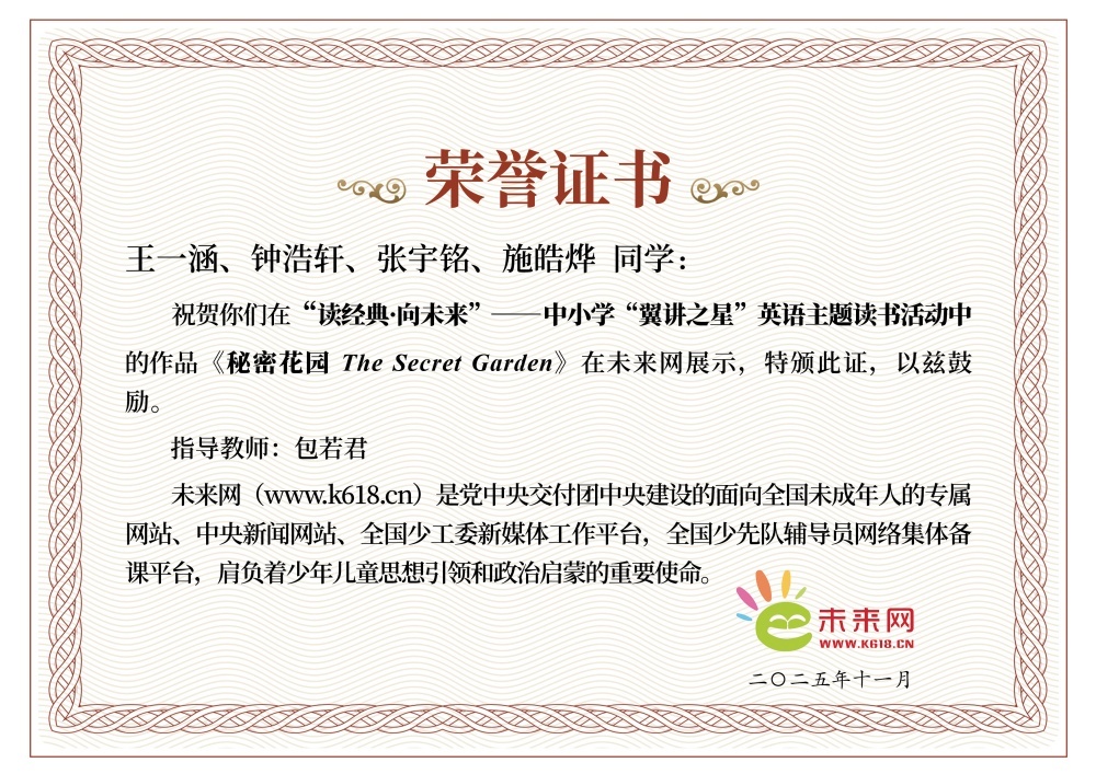 学生证书-名著-王一涵、钟浩轩、张宇铭、施皓烨