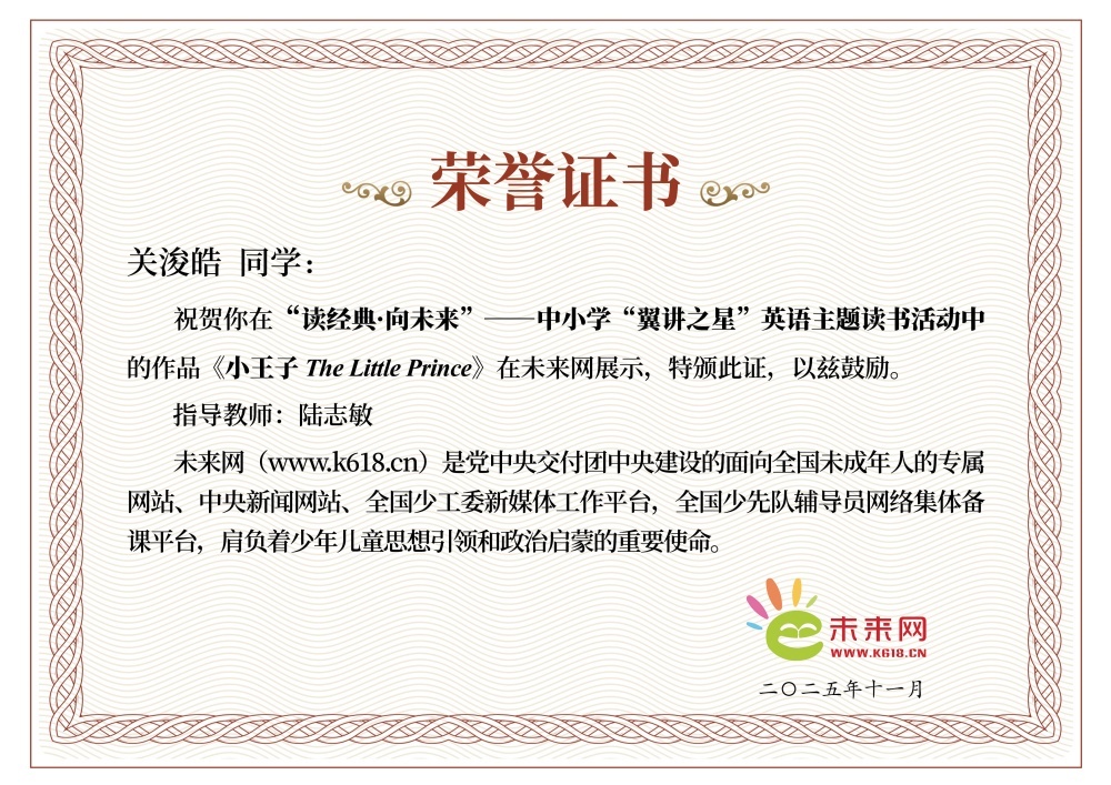 学生证书-名著-关浚皓