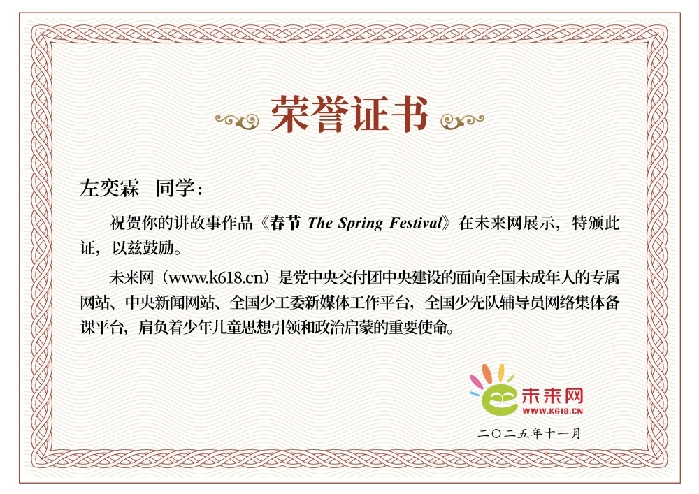学生证书-文化中国-左奕霖